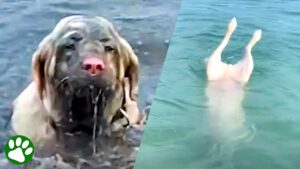 Dog thinks he’s a mermaid.